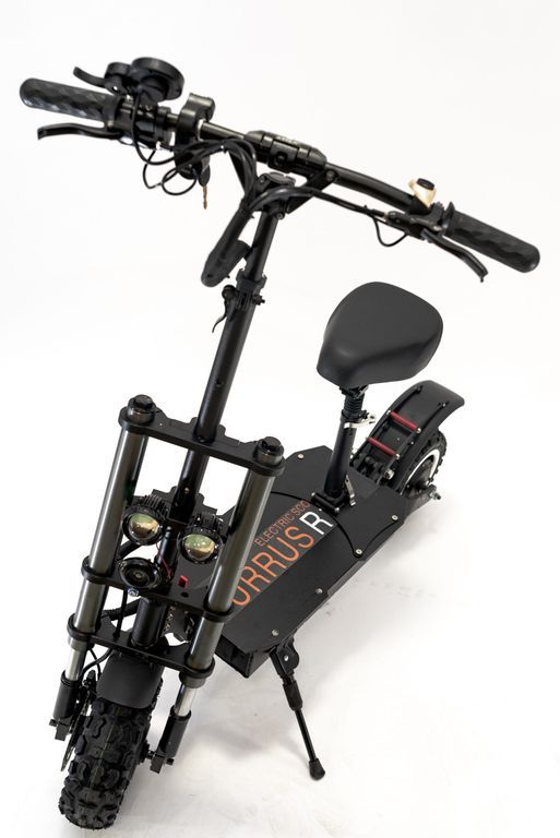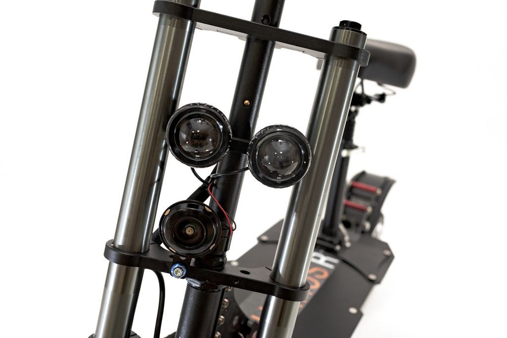 Электросамокат Currus R11 оснащен спереди мотоциклетной вилкой, а сзади газо-масляными амортизаторами. Электросамокат готов к полному бездорожью! Он хорошо справляются с неровностями и дорожными препятствиями.