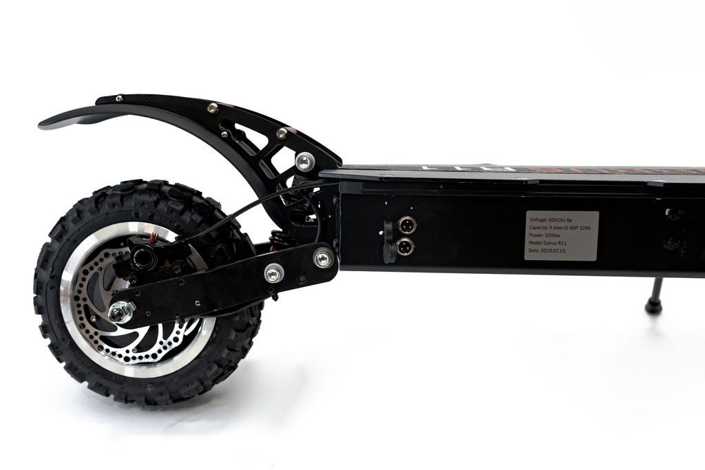На самокате Currus R11 установлены два 11-дюймовых 2*1600W мотор-колеса. С сумарной пиковой мощностью до 4000W. Это обеспечивает уверенное ускорение и экономию батареи при езде по прямой.