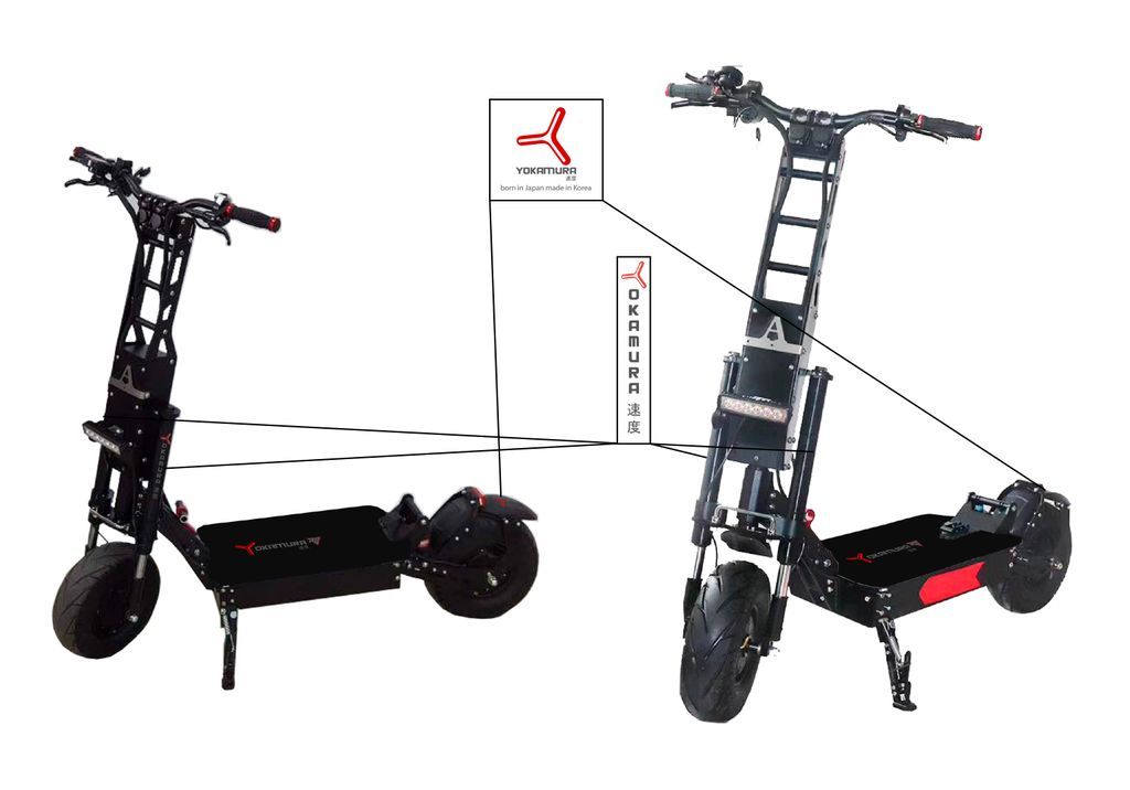 ЭЛЕКТРСАМОКАТ YOKAMURA RS | Японский электросамокат, созданный только для зоны экстрима. Кататься на таком мощном электросамокате от Японского бренда Якомура могут только опытные наездники. Самокат Yokamura rs обладает сверх мощностью, и на данном транспорте вы будите себя чувствовать словно на мотоцикле. Мощная подвеска в виде вилки будет держать отлично дорогу на любых ухабах и ямах. Мощность мотор колес 5000w в сумме, это примерно 9 л.с. До 60 км/ч самокат способен разогнаться за 6 секунд, а набрать максимальную скорость вам удастся менее чем за 12 секунд.