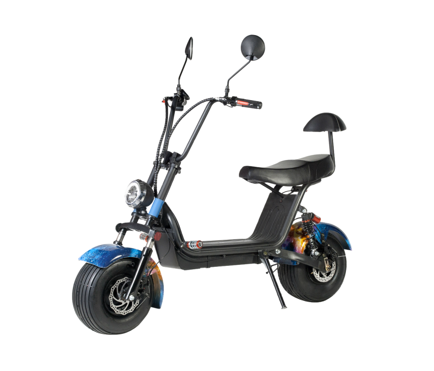 - Двойное сиденье — на электроскутере можно кататься вдвоем. Для пассажира есть удобная спинка сзади.
