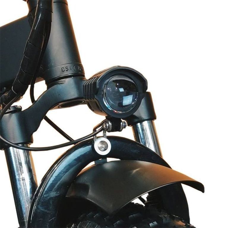 - Спереди установлена светодиодная фара, ярко освещающая дорогу в темное время суток и делающая заметным велосипедиста другим участникам движения