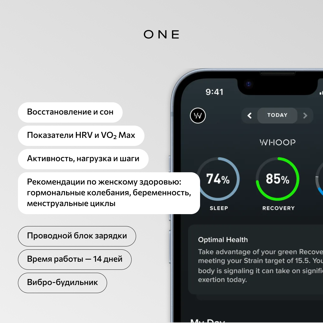 Фитнес-браслет WHOOP One 5.0 — это высокотехнологичное устройство, которое поможет вам достигать новых высот в тренировках и восстановлении. С функциями мониторинга здоровья, отслеживания сна и физической активности, этот браслет станет вашим незаменимым помощником на пути к здоровому образу жизни. Используйте WHOOP One 5.0, чтобы оптимизировать свои тренировки и поддерживать отличное самочувствие каждый день!